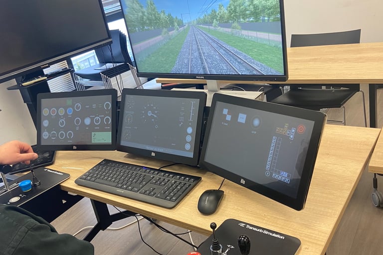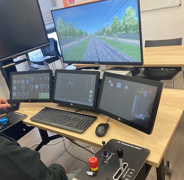 Lors de nos formations, nous utilisons des simulateurs de dernière génération, un véritable atout pour nos apprenants. Cet outil immersif recrée des conditions réelles d’exploitation ferroviaire, permettant de mettre en pratique les compétences acquises en toute sécurité. Grâce au simulateur, les étudiants peuvent s’entraîner sur des scénarios variés et complexes, renforçant leur maîtrise technique et leur capacité à réagir face à des situations critiques.